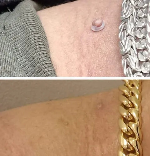 Dì addio ai fibromi penduli per sempre. Rimuovili senza sforzo, dolore o sanguinamento con Dermolux.